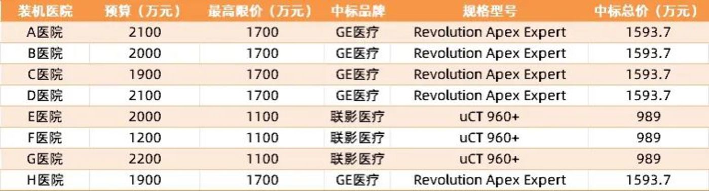 以近日结束的浙江省影像设备集中采购为例,该项目总预算为2.33亿元,最高限价给到1.62亿元,计划采购12台超高端CT。