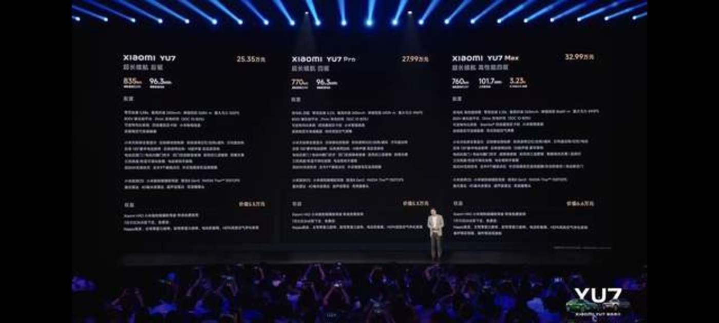 a)YU7 的最终价格:25.35 万元(标准版)/27.99 万元(Pro 版)/32.99 万元(Max 版)。此前市场的主流预期在 25-32 万元,从最终发布的价格来看,标准版的起售价符合市场预期,而 Max 版的价格略高于市场预期。