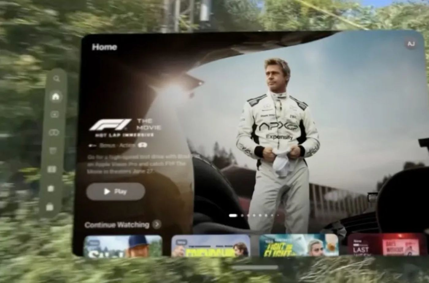 △ “F1电影热身圈沉浸式体验”让你(虚拟地)与布拉德·皮特一起驾驶 Vision Pro