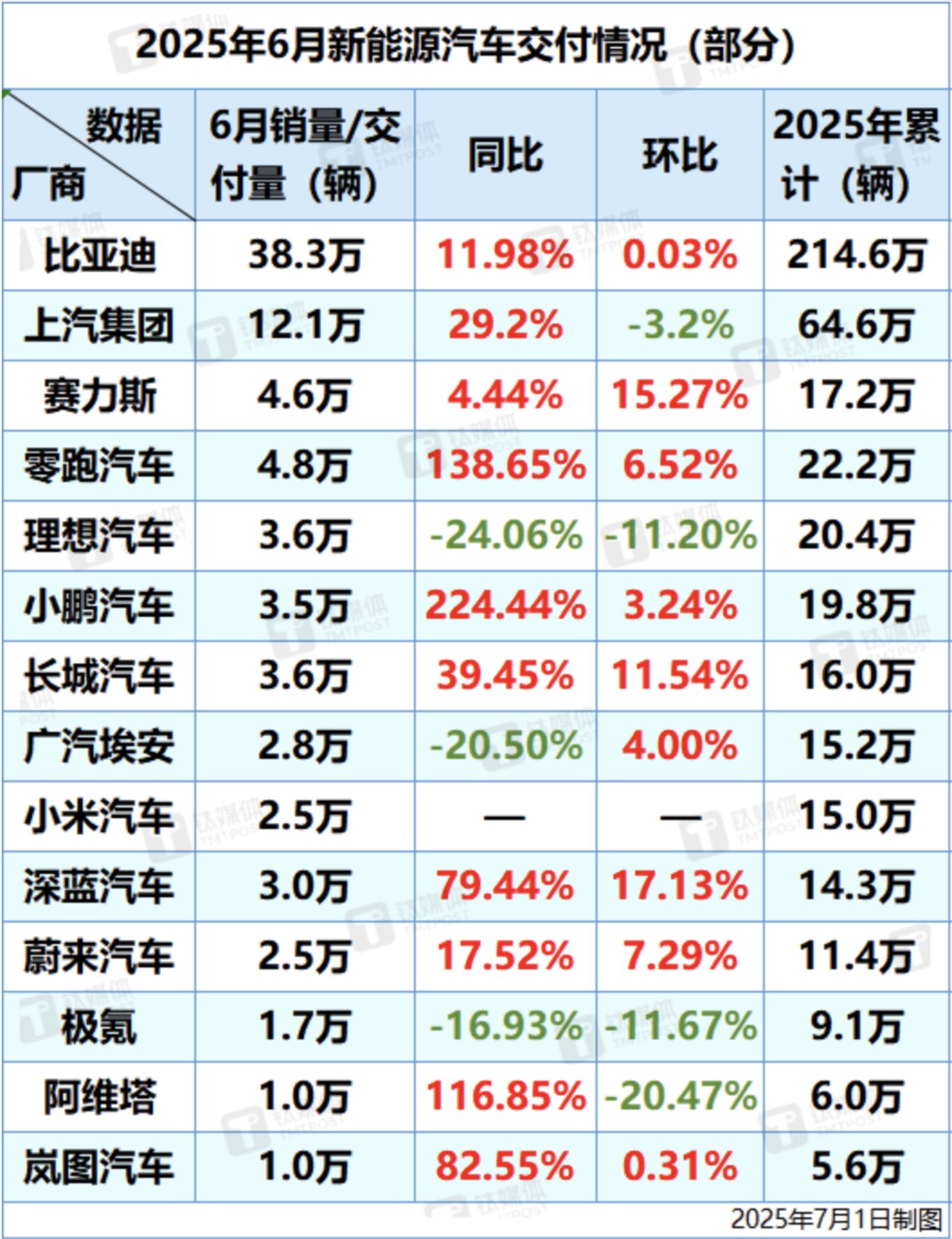 新能源汽车6月交付情况速览:7家交付量超3万,5家同比增超50%