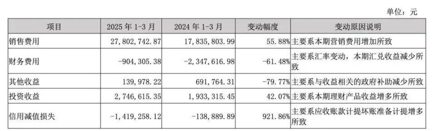 2024年和2025年一季度,佩蒂股份用于自主品牌建设的销售费用都大幅增长。2024年,销售费用同比增长14.92%,2025年一季度销售费用更同比增长55.88%。
