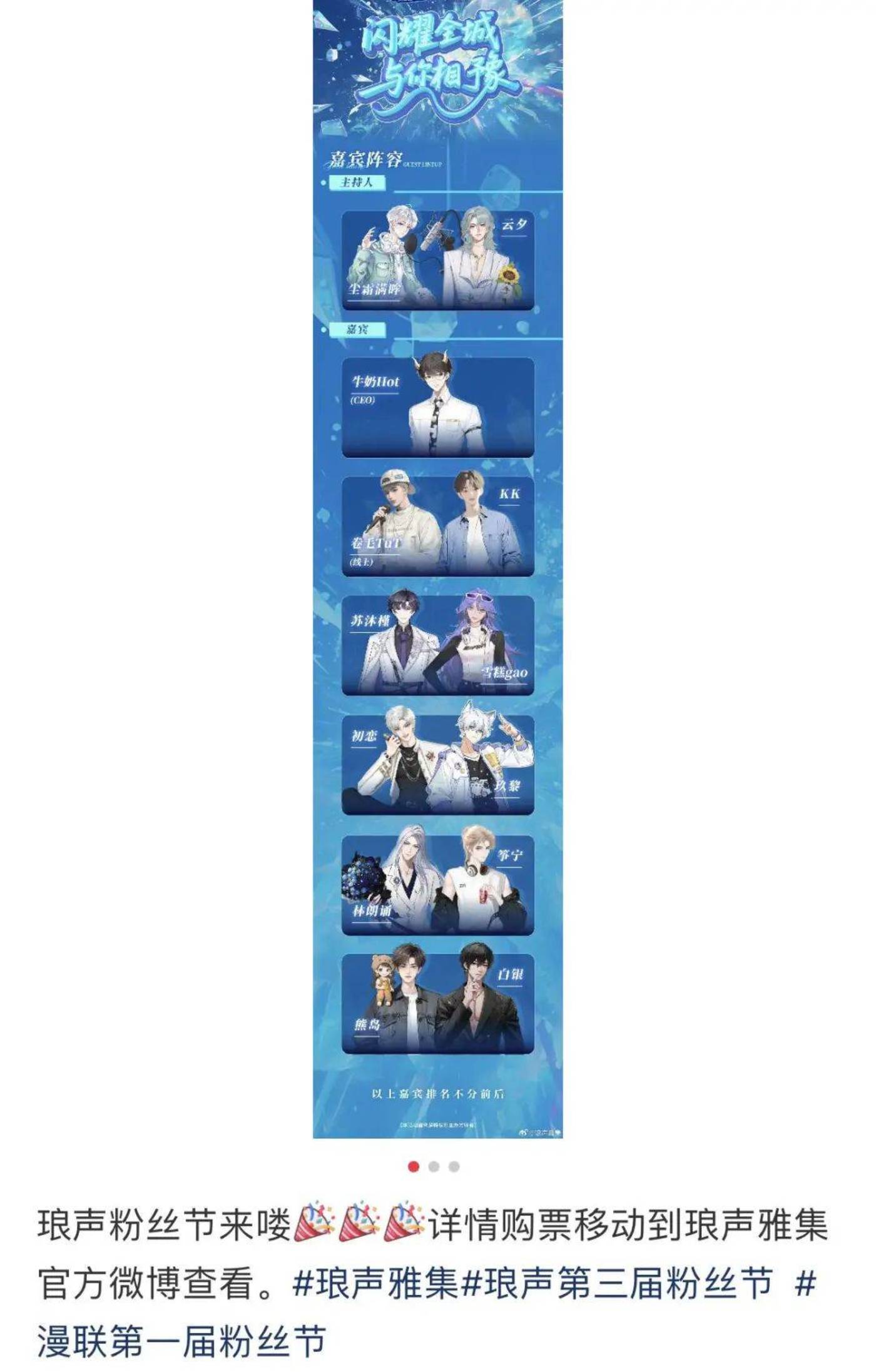 听潮阁每年还会开展“周年庆”的线下见面活动,同样也是依据粉丝贡献度来抽取门票。另一家叫“琅声雅集”的语音厅公会,则会在每年举办粉丝节的线下见面会,针对粉丝公开售票,票价在158-358元之间。