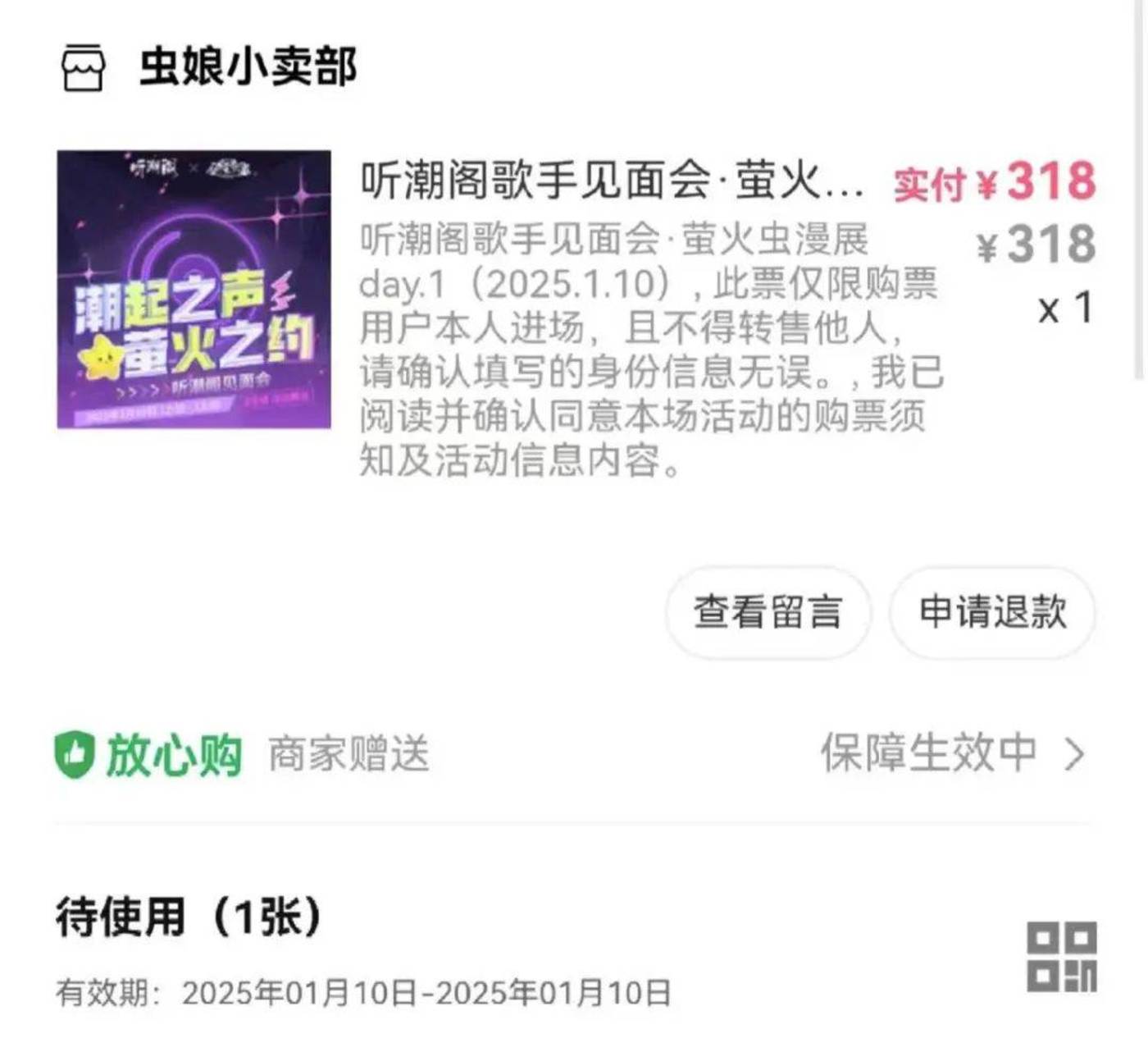 这场漫展活动向外公开售票,票价为318元。相比起内娱艺人的见面会价格来说,这个价格无疑是较低的,但于恬却觉得性价比不高,“因为其实他们每个人也就唱了1首歌,虚拟人的MV占去半小时,整个活动不到1小时就结束了。”