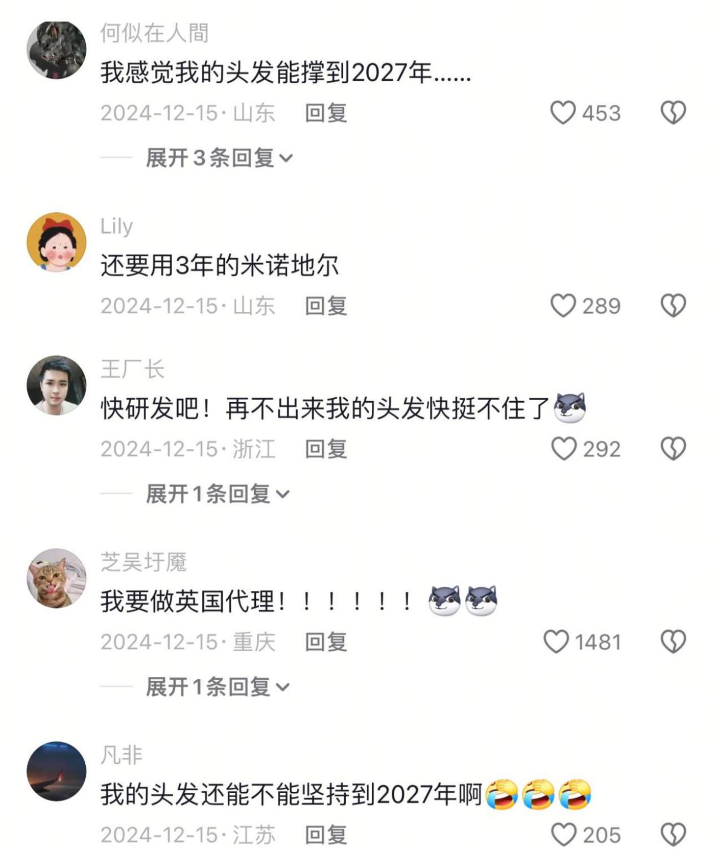 央视的该条视频获得30.9万的点赞和34万的转发,远超于其它视频,“脱发治疗”的关注度出乎意料的高。而从评论区头像等来看,渴望治愈脱发的人群显现出年轻化特征。