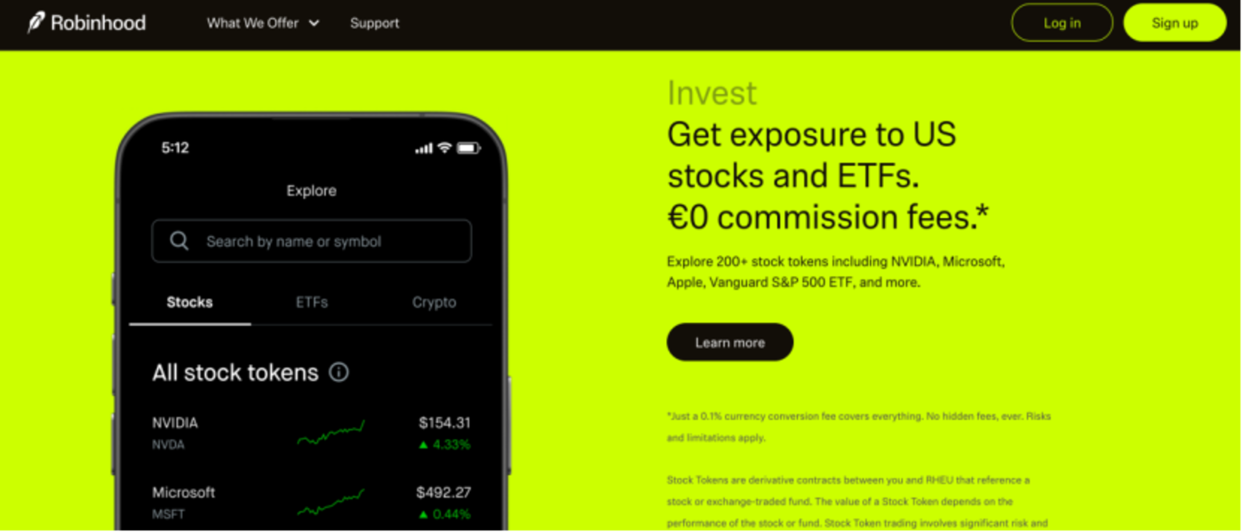 在Robinhood的帮助中心,该公司指出,当购买其任何股票代币时,“您并不是在购买实际的股票,而是在购买遵循其价格并记录在区块链上的代币化合约。”