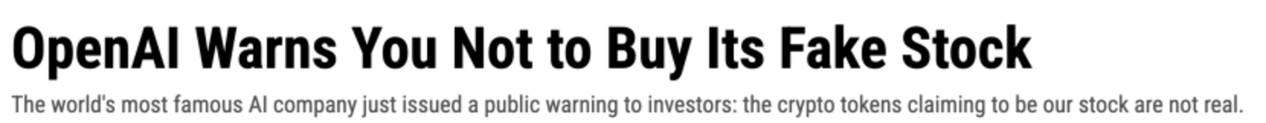 媒体也毫不留情,将此事形容为OpenAI警告众人不要买“假股票”。