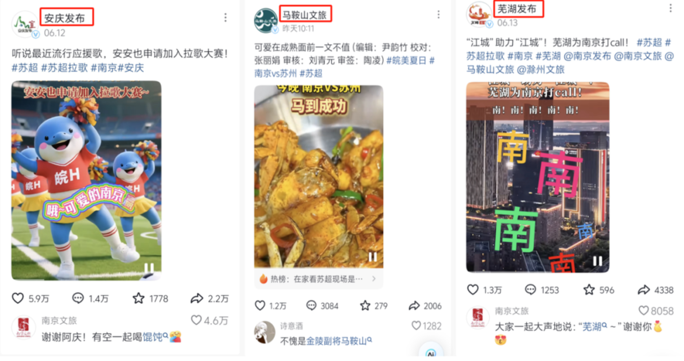 这不是安徽第一次「抢镜」苏超。 早在6月14日,南京文旅频道就在小红书上转发过一个名为《苏超联赛:合肥的精神状态》的搞笑视频,文案赫然写着:江苏散没散不知道,感觉安徽要散了。