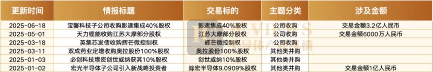 其中,交易规模达到百亿元以上的并购事件共10起,海光信息吸收合并中科曙光100%股权的交易以1,159.67亿元位居首位。2025年上半年以来,不止海光的并购案,半导体行业出现了许多令人关注的并购预告。有人说,半导体产业并购进入了黄金时代。