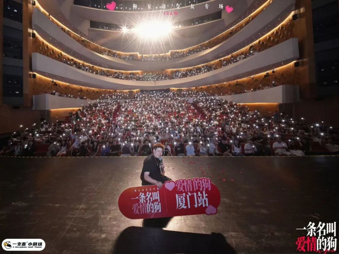 最早我是做漫才的。因为我算主理人,主持偏多,衍生出双人漫才内容《你好小芳》,这个作品全国巡演了大概是204场。现在是《一条名叫爱情的狗》,全球巡演大概140多场。