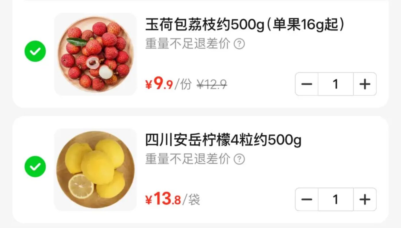 更直观的对比是,柠檬的价格已经超过了被称作是“水果贵族”的荔枝——在小象超市APP中,500g的安岳黄柠檬价格为13.8元,而同样500g的玉荷包荔枝仅需9.9元。