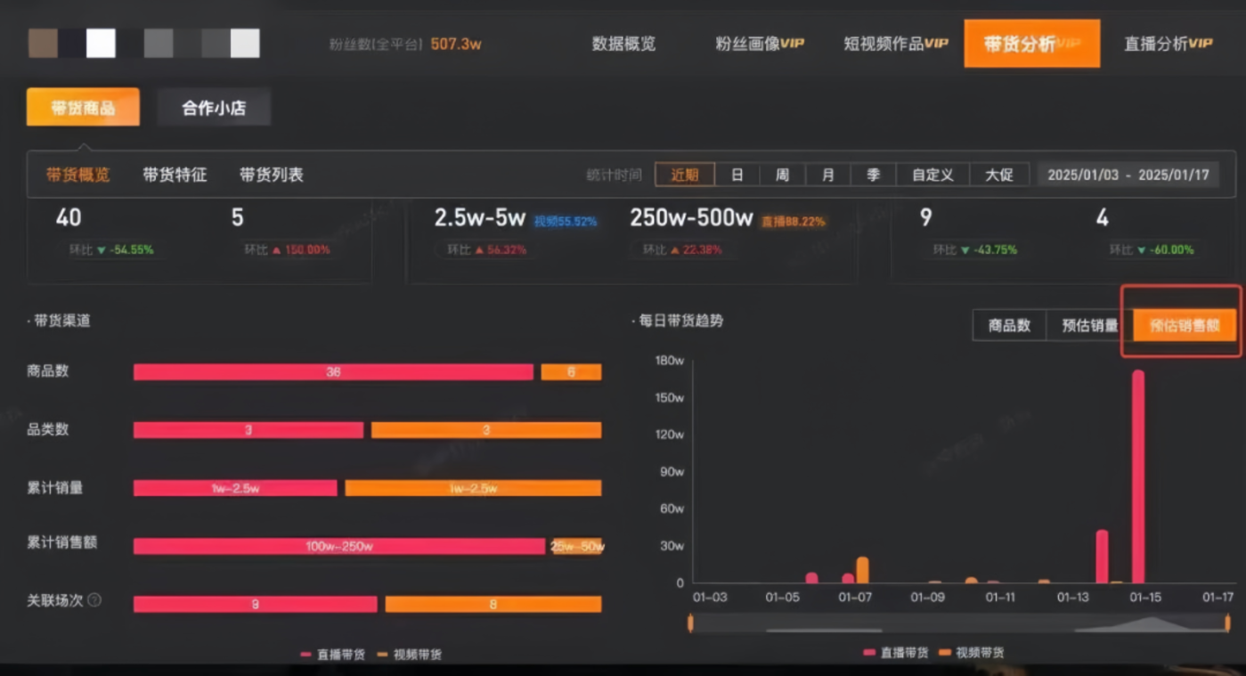 新榜数据显示,“刘雯”在抖音平台1月的直播以及短视频带货销售额就在250万元至500万元之间,这一数据同比增长了近60倍。带货商品也从过去19元一条的内裤,变成高利润的白酒。1月15日,刘雯一场直播预计入账40万。