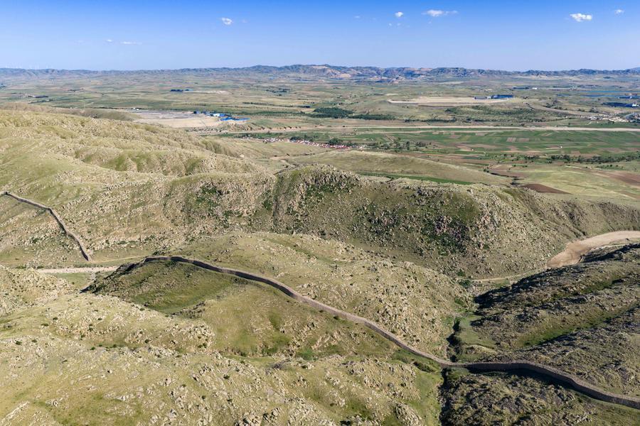 内蒙古包头市固阳县固阳秦长城天盛成段。新华社记者 马金瑞 摄