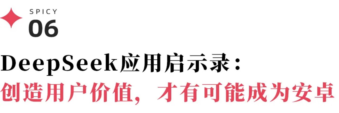 接下来,DeepSeek如果想要成为AI时代的安卓,除了要持续精进底层算力,更需要做的,其实是和开发者一道,探索全新的应用场景,给用户带来更多实实在在的使用价值。