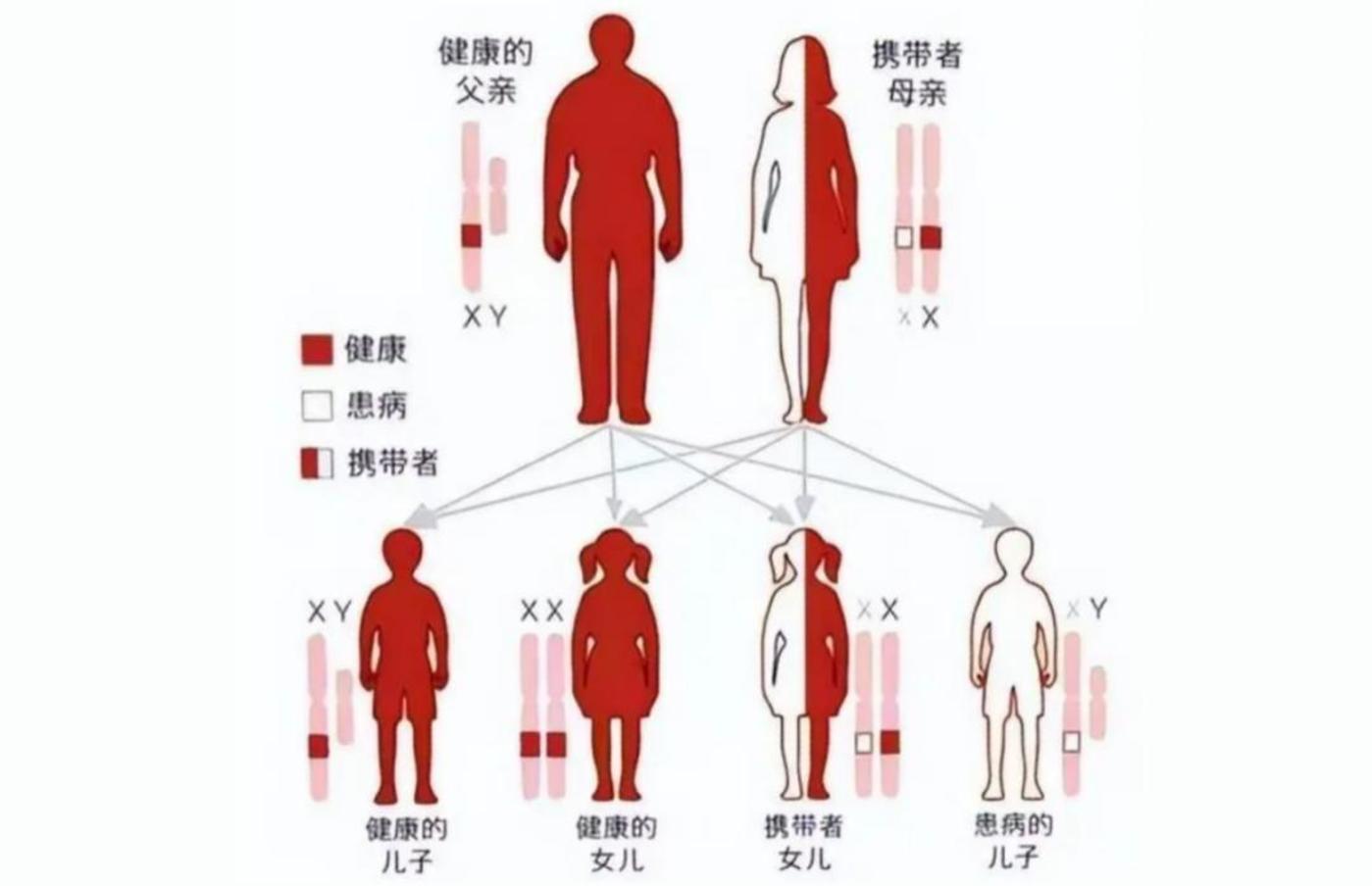 后来,经过医学专家的确认,当时在欧洲王室成员流传的可怕疾病,正是“传男不传女”的遗传病血友病。血友病因X染色体上的FVIII或FIX基因异常而发病,呈X染色体连锁隐性遗传。