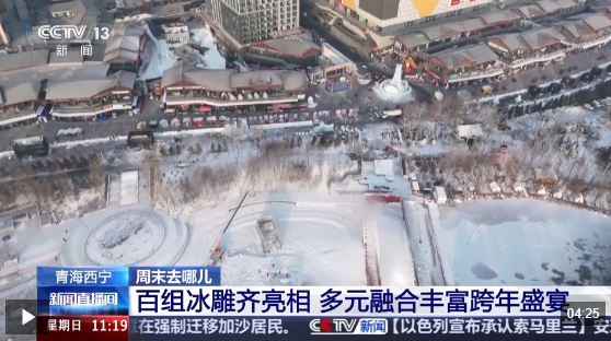 随着元旦临近,不少地方已经提前开启了旅游市场的预热活动。在青海省西宁市城北区的北川青唐城,大型雾凇冰雕群、可口的青海土火锅和热闹的民俗表演,吸引了很多游客前来体验。