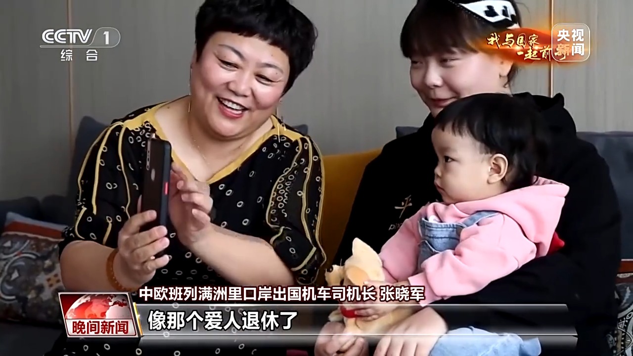 中欧班列满洲里口岸出国机车司机长 张晓军:我家庭还是变化挺大的,我爱人退休了。现在也有了一个小外孙女,他们还给我起了个“孩子奴”的外号。