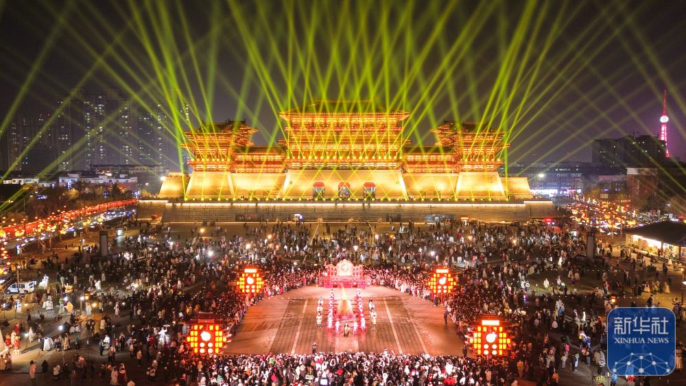 ↑ 1月1日,游客在河南省洛阳市隋唐洛阳城国家遗址公园内欣赏演出。新华社发(黄政伟摄)
