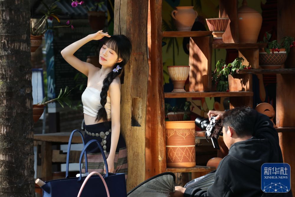 ↑ 1月2日,游客在云南省景洪市曼弄枫街道曼贺纳古寨拍照。新华社发(李云生摄)