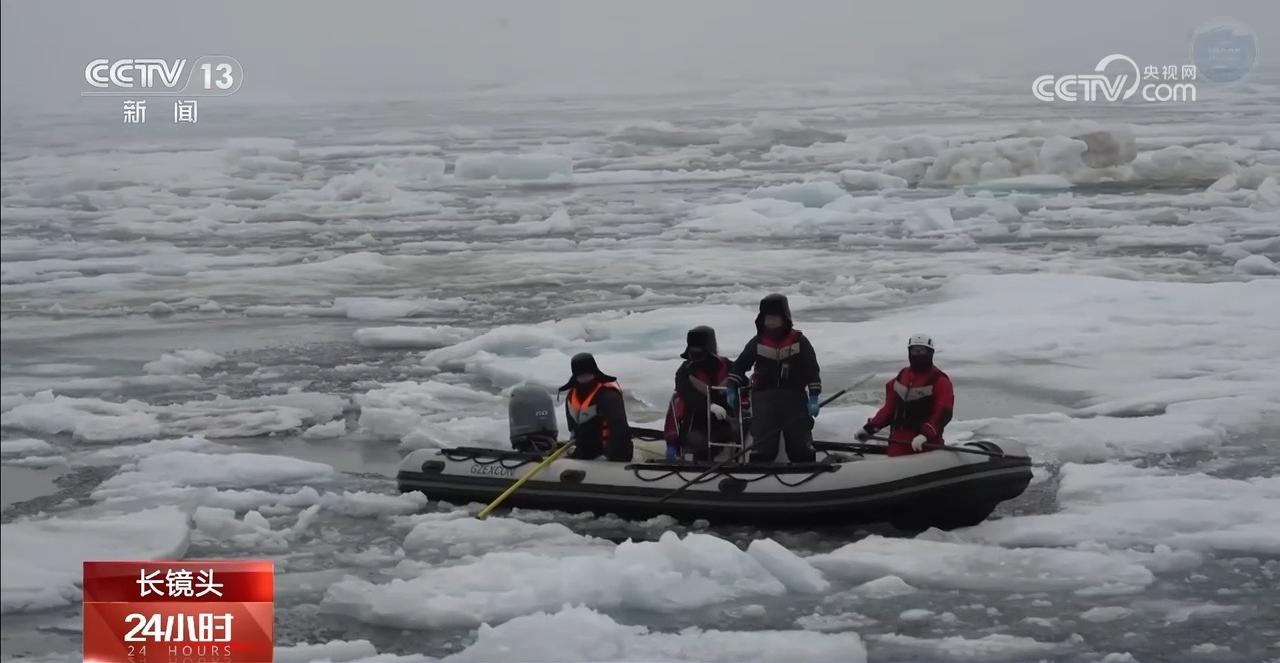 中国科学院深海科学与工程研究所研究员 田丽艳:你眼睁睁地看潜器就在下面,它就是出不来。因为它刚开过来,那个冰就又过去了,潜水器回收过程中,上方不能有冰,但是因为这个冰的覆盖率很大,你很难找到一片特别开阔的水塘。