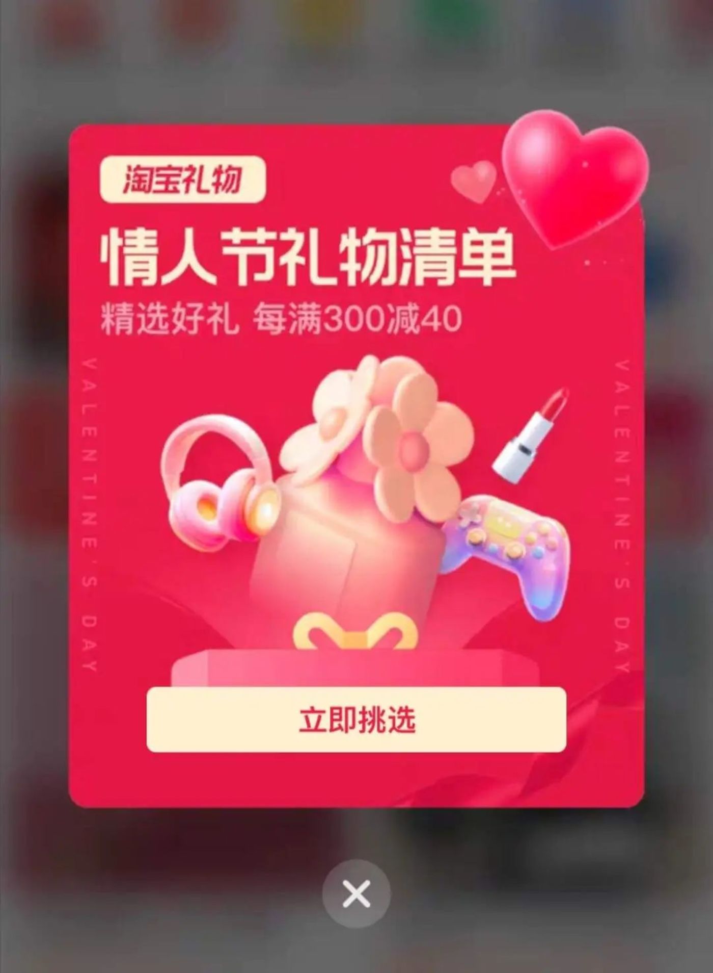 淘宝“送礼物”功能的折扣同样来自商家投入。在店铺参与平台满减活动的情况下,商品页面显示的折扣跟随满减规则变化,淘宝在情人节促销期间的满减规则为“满300减40”,换算为折扣约为8.7折。此前的“满200减30”和“满200减20”则分别对应8.5折和9折。