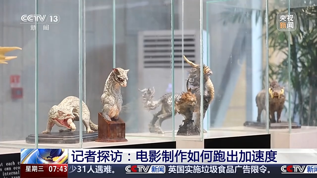 总台央视记者 杨子清:我身旁的团队,正紧锣密鼓地为新春贺岁档拍摄做着虚拟预演。负责人告诉我,以往完成一个复杂的视效镜头或视觉效果,往往要耗费一年以上的时间,不仅周期漫长,还得投入海量的人力与技术成本。而现在,有了影视虚拟化制作平台,只需要花1天时间导入成熟的数字资产,就可以进行虚拟预演。无论是画面里的场景细节还是虚拟人物的每一个微表情都能实时呈现。有了这份“动态分镜”,剧组内的主创们就可以更好地实现心中所想的效果,而后,剧组就可以真正投入实拍。这不仅节省了制作成本,制作周期也大幅缩短超50%,更让那些天马行空的创意,有了快速落地的可能。