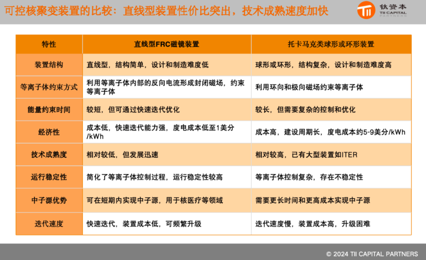 其次是技术路线选择:不同的技术路线有不同的成熟度和成本。托卡马克技术成熟但成本较高,而FRC技术更具性价比。投资者应综合考虑不同技术路线的特点和潜力。