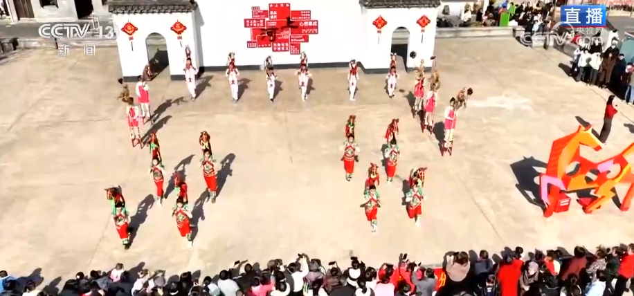 旁边进行的是踩高跷表演,和北方高跷相比,河上镇高跷的高度并不算高,但却格外讲究“鲜”跟“活”。小朋友们踩着高跷,时而转身,时而跳跃,动作灵动又惊险,这正是传统文化传承中最动人的模样。