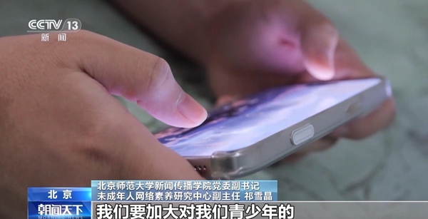 北京师范大学新闻传播学院党委副书记、未成年人网络素养研究中心副主任 祁雪晶:要加强家校社的联动,全社会也要有协同的义务,比如说互联网平台,应该在平台的内容和推荐机制上,要加大对青少年的良性内容的投入,也要加强对网络生态的治理,净化网络空间,确保优质内容能够供给青少年,同时避免青少年受到网络风险内容的侵蚀。