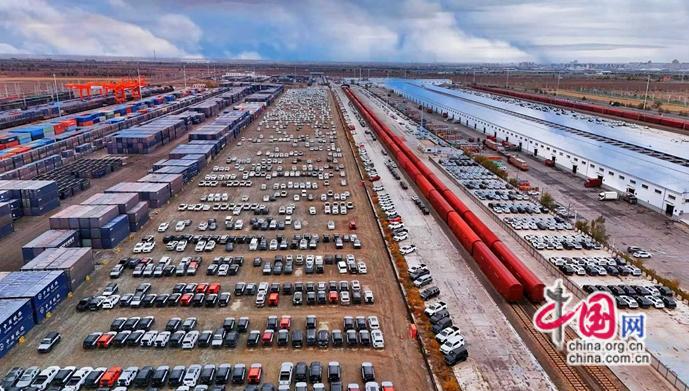 高频通行,助推枢纽能级跃升。新疆位处西北边境,虽物产丰富,以往受限于地理位置,难以充分参与国际贸易。但随着共建“一带一路”深入推进,中欧班列飞速兴起,霍尔果斯铁路口岸站逐渐成为班列西通道的关键节点。目前,该口岸中欧(中亚)班列日均通行量在27列以上,平均每2小时完成一列入境返程中欧班列的换装工作,其与阿拉山口口岸站共同贡献了全国五成以上的中欧班列通行量。随着班列开行量越来越大,不仅越来越多的日用百货、机电设备、农副产品等“中国制造”选择从新疆铁路口岸走向中亚、欧洲市场,也吸引了汽车组装、电子产品加工等产业在口岸周边聚集,推动“通道经济”向“口岸经济”“产业经济” 转型,让新疆正成为辐射亚欧的国际物流与贸易枢纽。