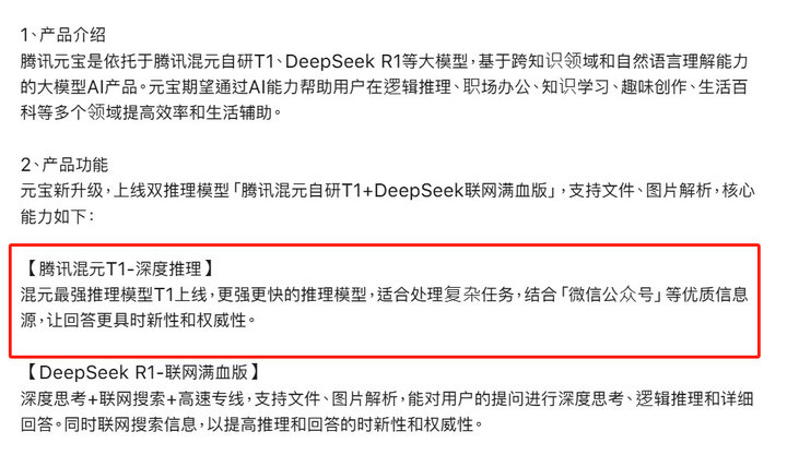 更别说元宝T1仍处于内测阶段,其推理能力和场景适配性可能尚未达到微信生态的高标准要求,想在第一时间跟上市场的节奏,先通过接入DeepSeek R1建立用户对AI能力的评判标准,再推出自研模型混元T1进行对比验证。