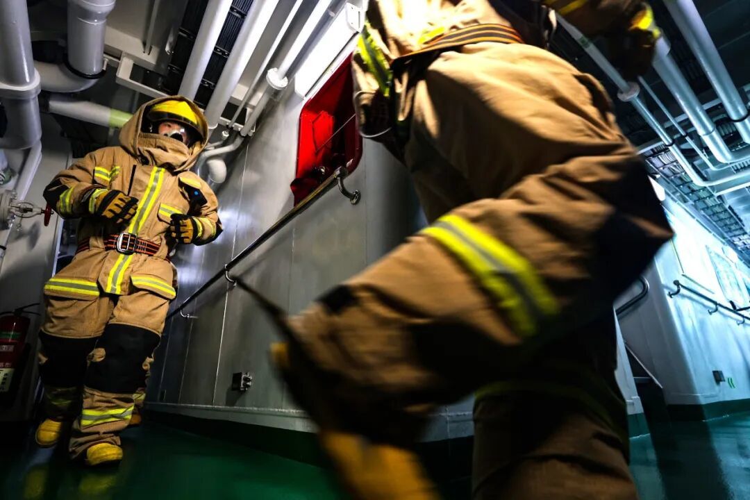海军济南舰主炮战位官兵组织训练。李金彪摄