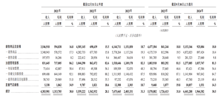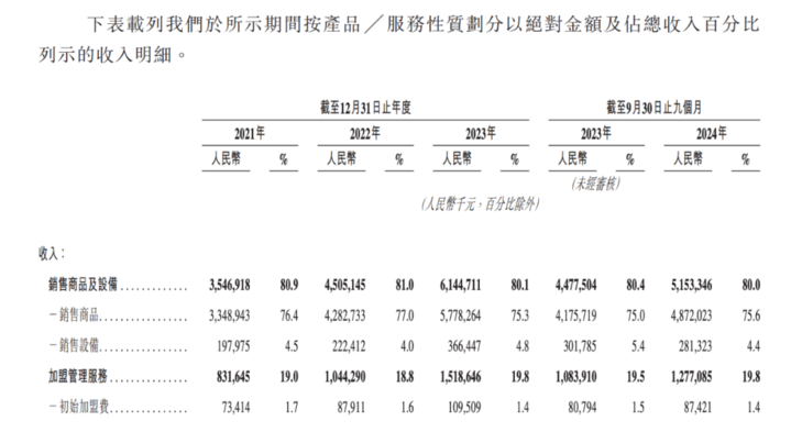 与多数茶饮品牌相似,古茗的收入主要来自于加盟商,其80%收入为向加盟商销售商品和设备,19.8%收入来自加盟费及后续服务费等,0.2%的收入来自于自营门店。