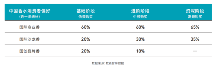 在这份《白皮书》看来,中国香水市场一个非常重要的特点是:出于“不出错+易辨认”的考量,80%的香水消费者在基础阶段就会选购国际商业香或小众沙龙香品牌。这让国内香水市场呈现出,消费者“入门即品质”,国际品牌牢牢占据主流地位的现状。