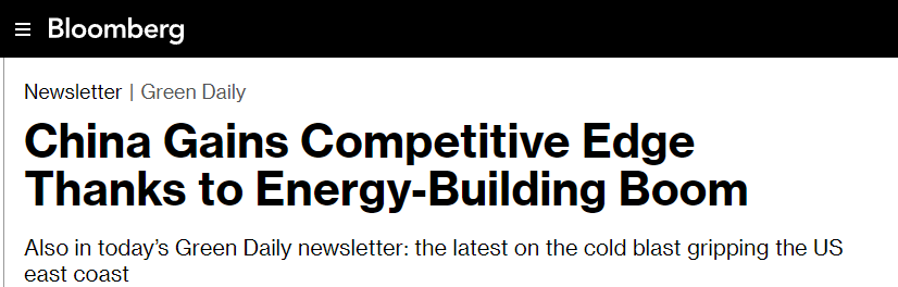 美国彭博社网站28日发表题为《中国凭借能源建设热潮获得竞争优势》的文章。