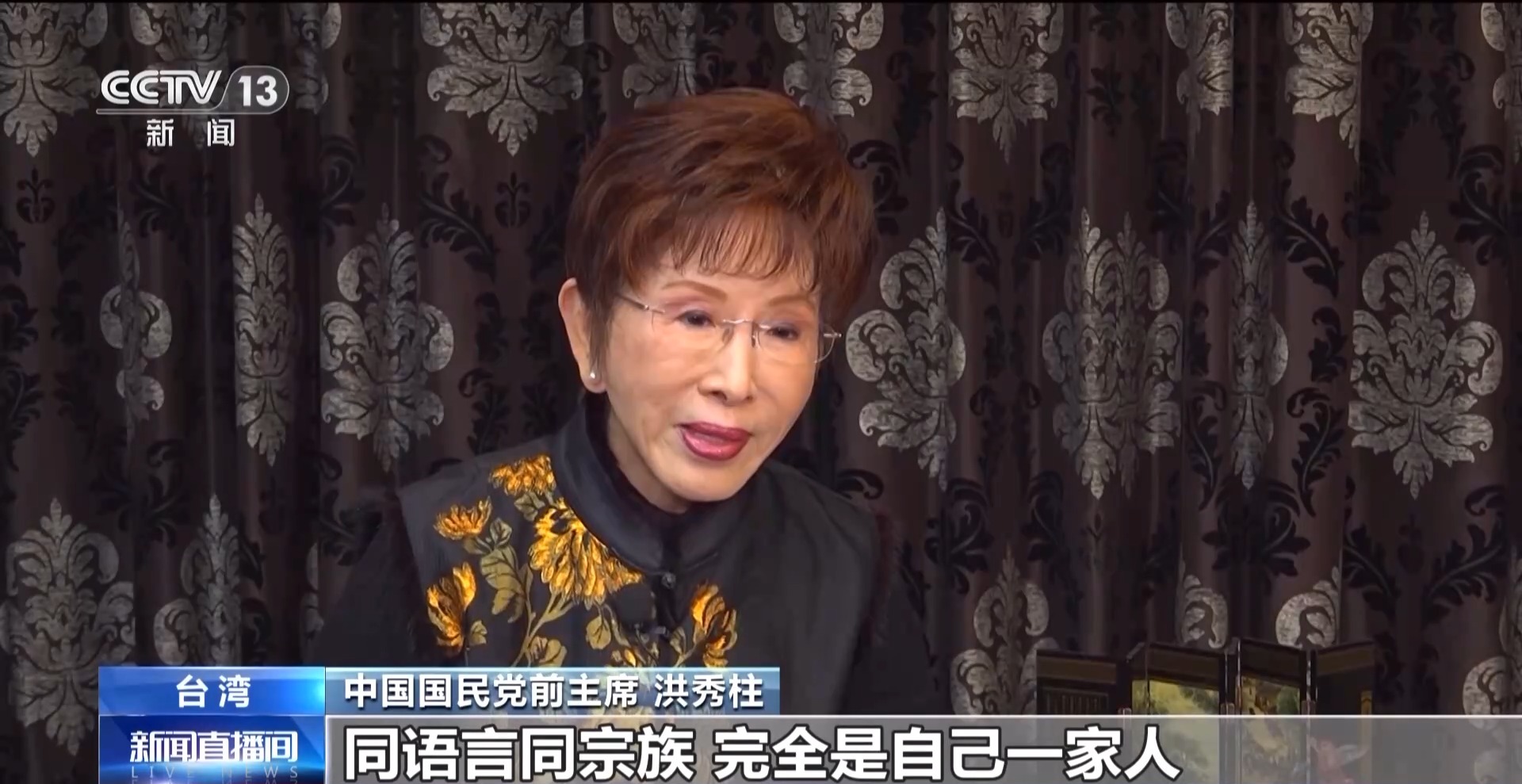 中国国民党前主席 洪秀柱:民进党要把台湾带到哪里去?大陆明明跟我们是同文同种、同语言、同宗族,完全是自己一家人,而且有那么多东西可以跟你共享的、互利共融的。民进党再这样下去的话,台湾真的是叫兵凶战危。所以这不叫做作死自己吗?自己作死就算了,还把2300万人一起绑着去作死,久而久之老百姓会看得很清楚了。“两岸一家亲”,有了交流,融合发展,两岸能够好上加好。