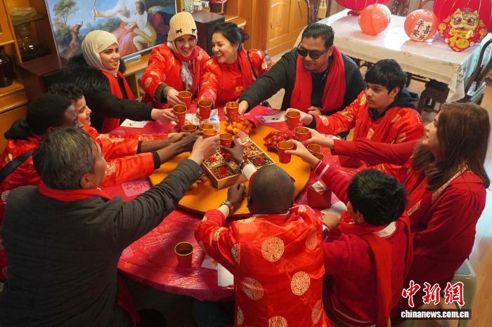 2月3日,中外居民举杯共迎即将到来的中国农历新年。董易鑫 摄