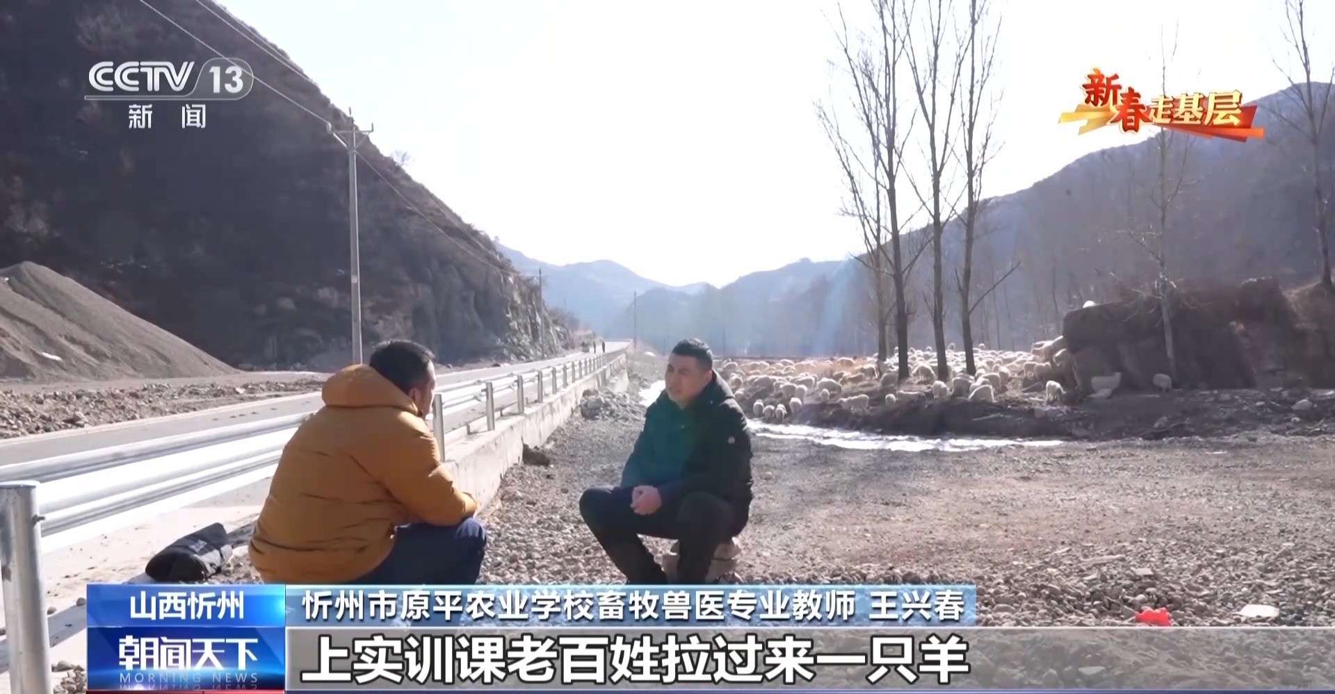 忻州市原平农业学校畜牧兽医专业教师 王兴春:上实训课老百姓拉过来一只羊,当时这个山羊得了这个脑包虫病。在完成手术之后,当时这个羊马上就站起来,它也不转圈了。当时和这个养羊老百姓在聊的时候,他们就说,老师们如果说你们要是带上学生来我们村里头,那我们就方便很多了。所以我当时就萌发了一个能把我们科技服务送到老百姓的田间地头,送到他家门口的想法。