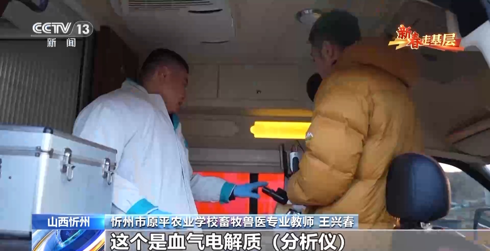忻州市原平农业学校畜牧兽医专业教师 王兴春:这是我们出诊的工具,这个是电子显微镜,这个是血气电解质(分析仪)。这个是我们学校专门给学生实验用到的,这些耗材都是学校每年定期经费用于做检查的,但是学校没有现成的动物,我们下来服务的时候就能提供现成的服务,给老百姓实打实免费的服务。