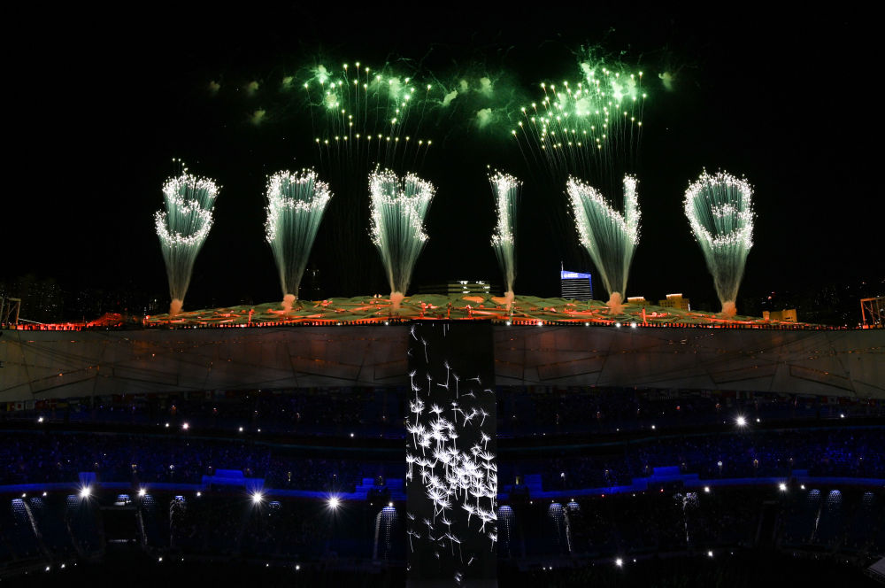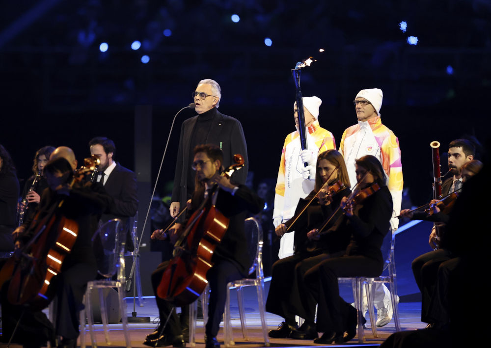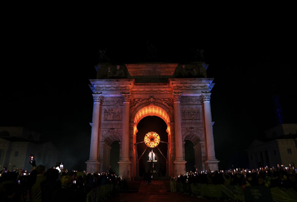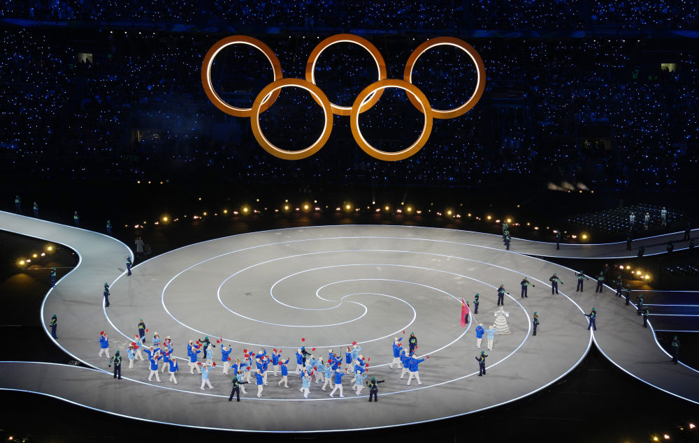 ↑中国代表团在米兰冬奥会开幕式上入场。