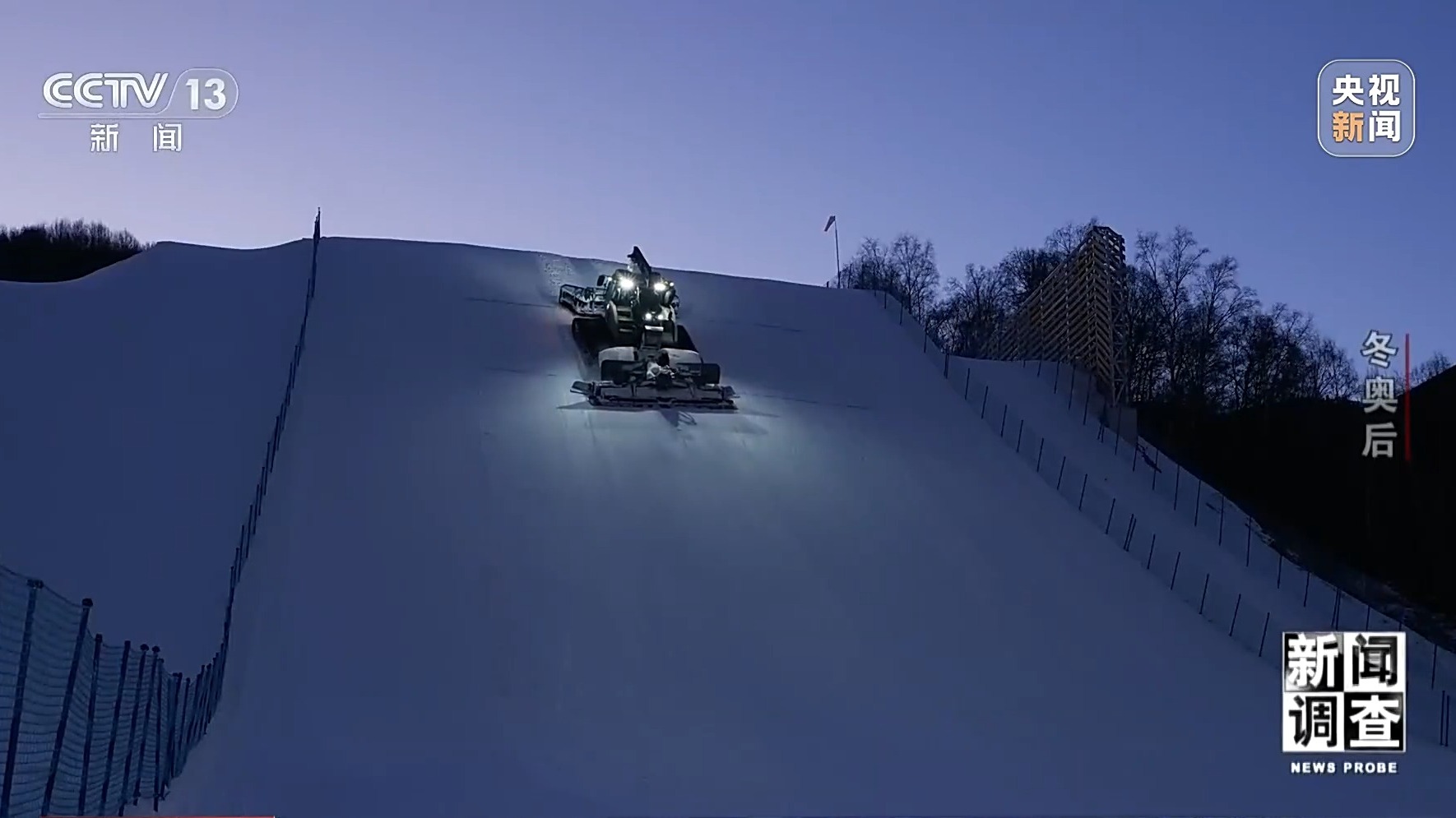 除了雪地摩托司机,小杜另一个身份是“压雪塑形师”。大跳台、U型场地等专业赛道,通常由压雪车初步塑型,再进行高精度手工修正和后续维护,这是自由式滑雪、单板滑雪等项目场地保障的核心技术岗位。
