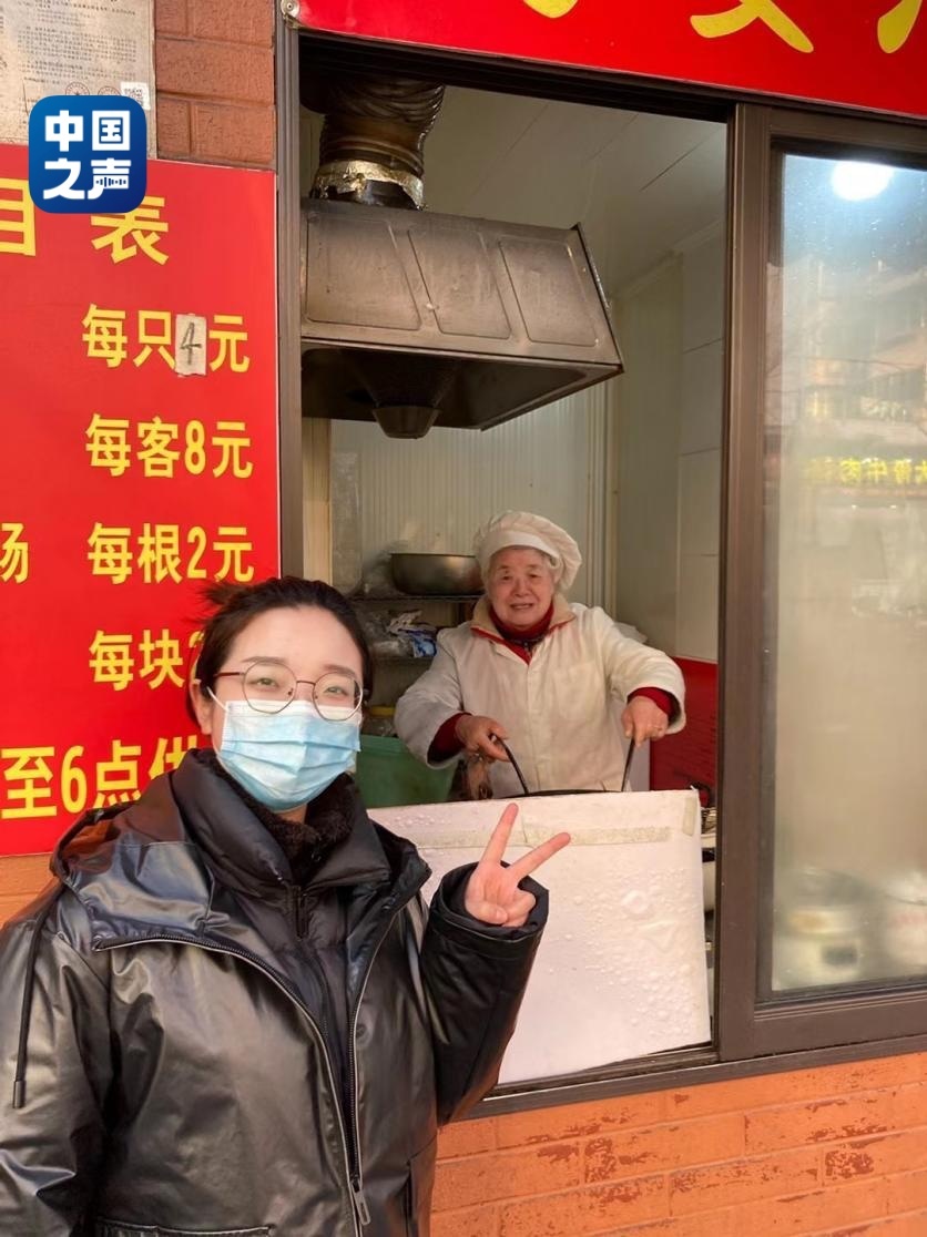 陈真与沈奶奶在电话亭前合影