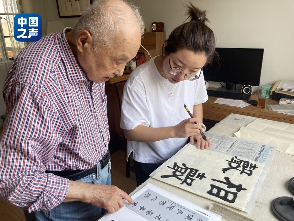 陈真与周爷爷一起练习书法