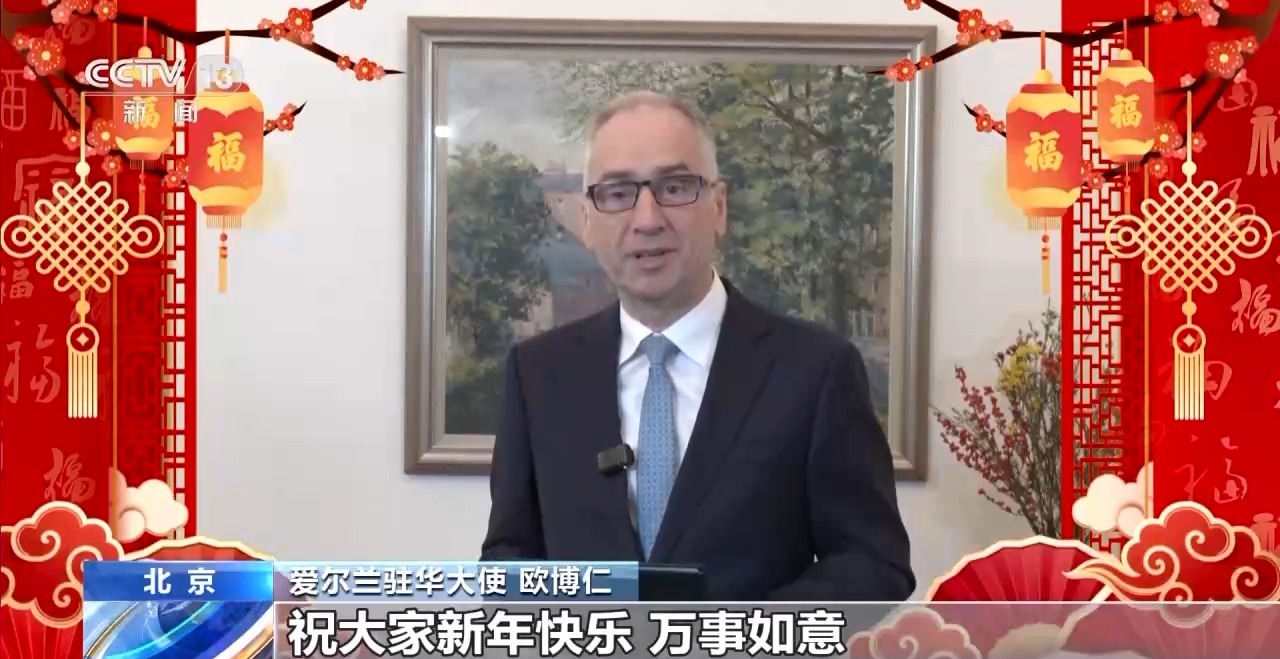 爱尔兰驻华大使 欧博仁:春天将至,白昼渐长……这是安东尼·拉夫特里写于17世纪的一首咏春诗。我谨代表爱尔兰人民,祝大家新年快乐、万事如意。