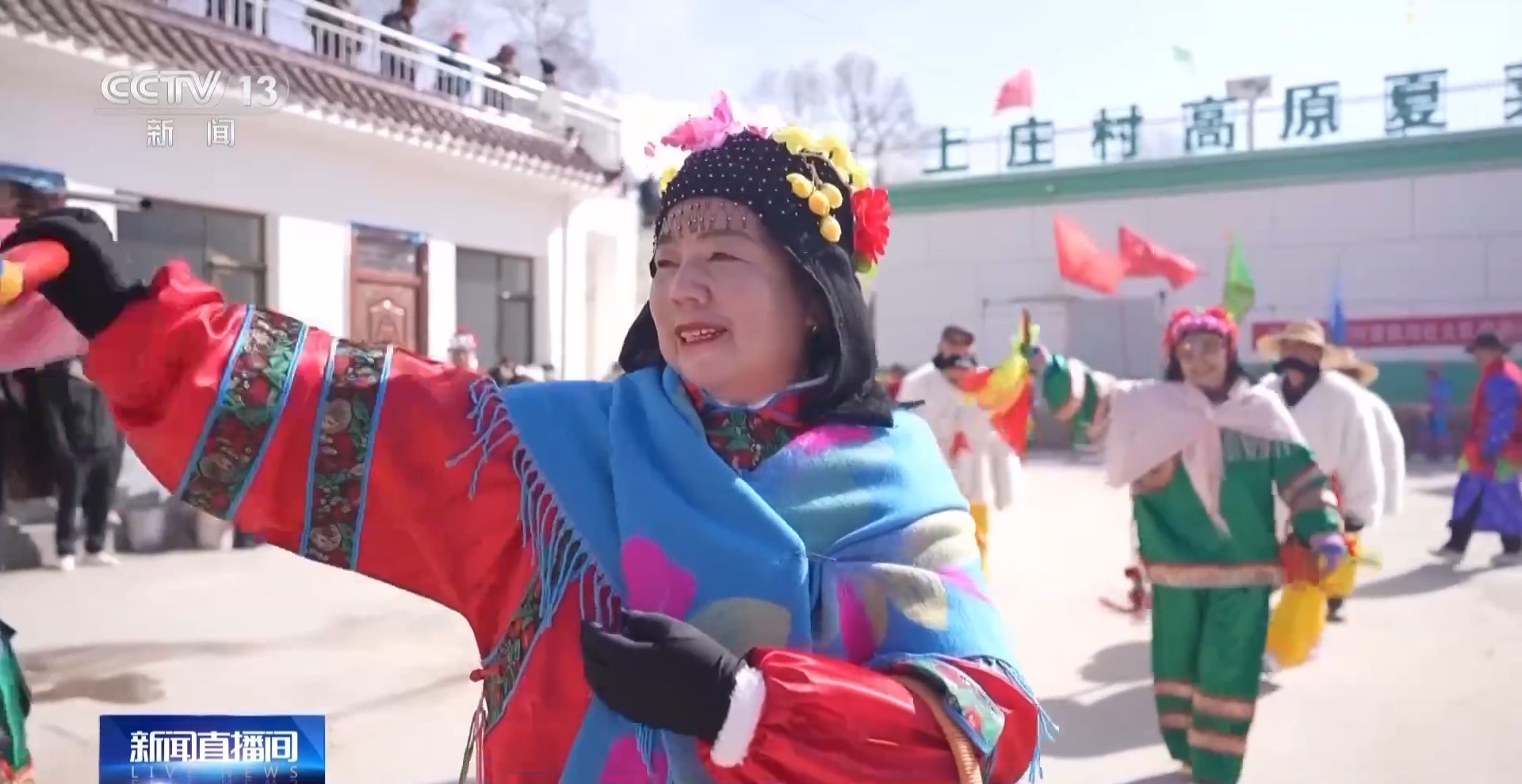 当地表演的社火叫马衔山秧歌,是甘肃省级非遗,一种以歌舞等民间艺术形式演绎本地农耕文化的活动。上庄村外出务工的村民较多,村里的社火表演已经中断十多年。这次村里提出重启社火,村民们热情高涨、踊跃报名。