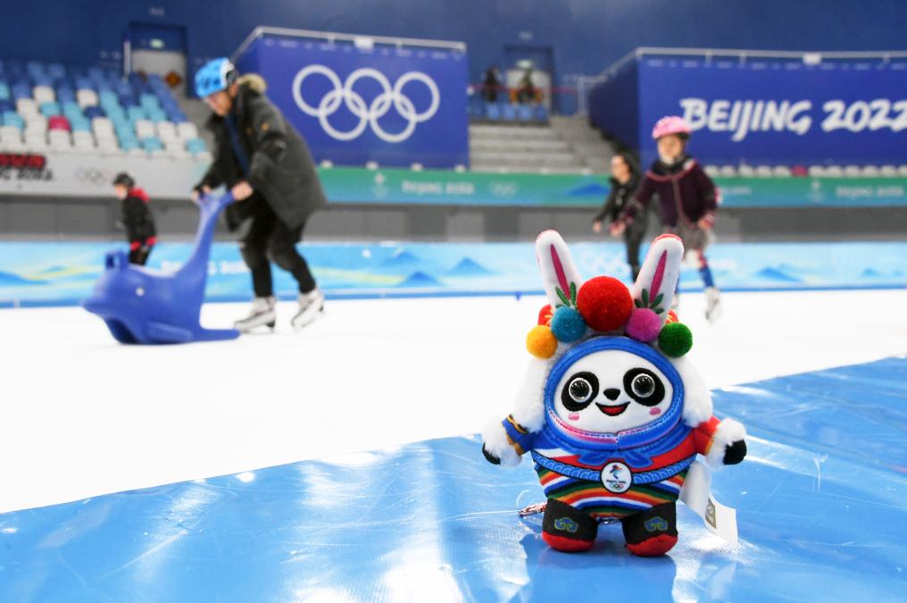 2023年1月22日在国家速滑馆拍摄的“兔墩墩”。新华社记者任超摄