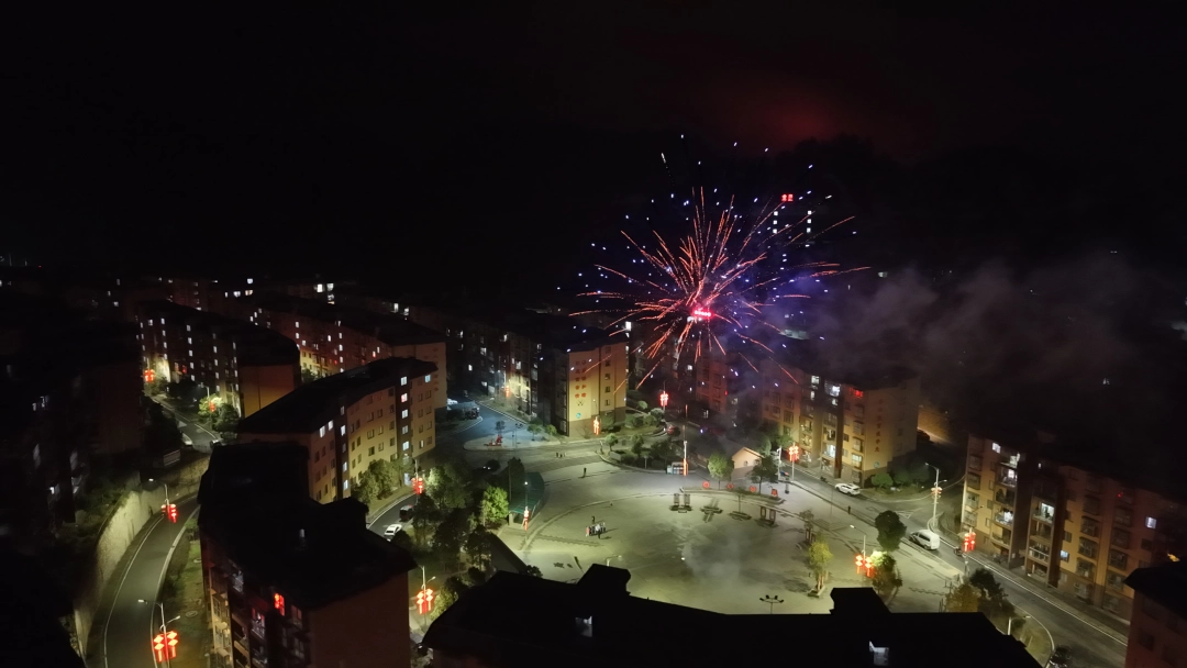 龙里县奋进社区夜晚的烟花