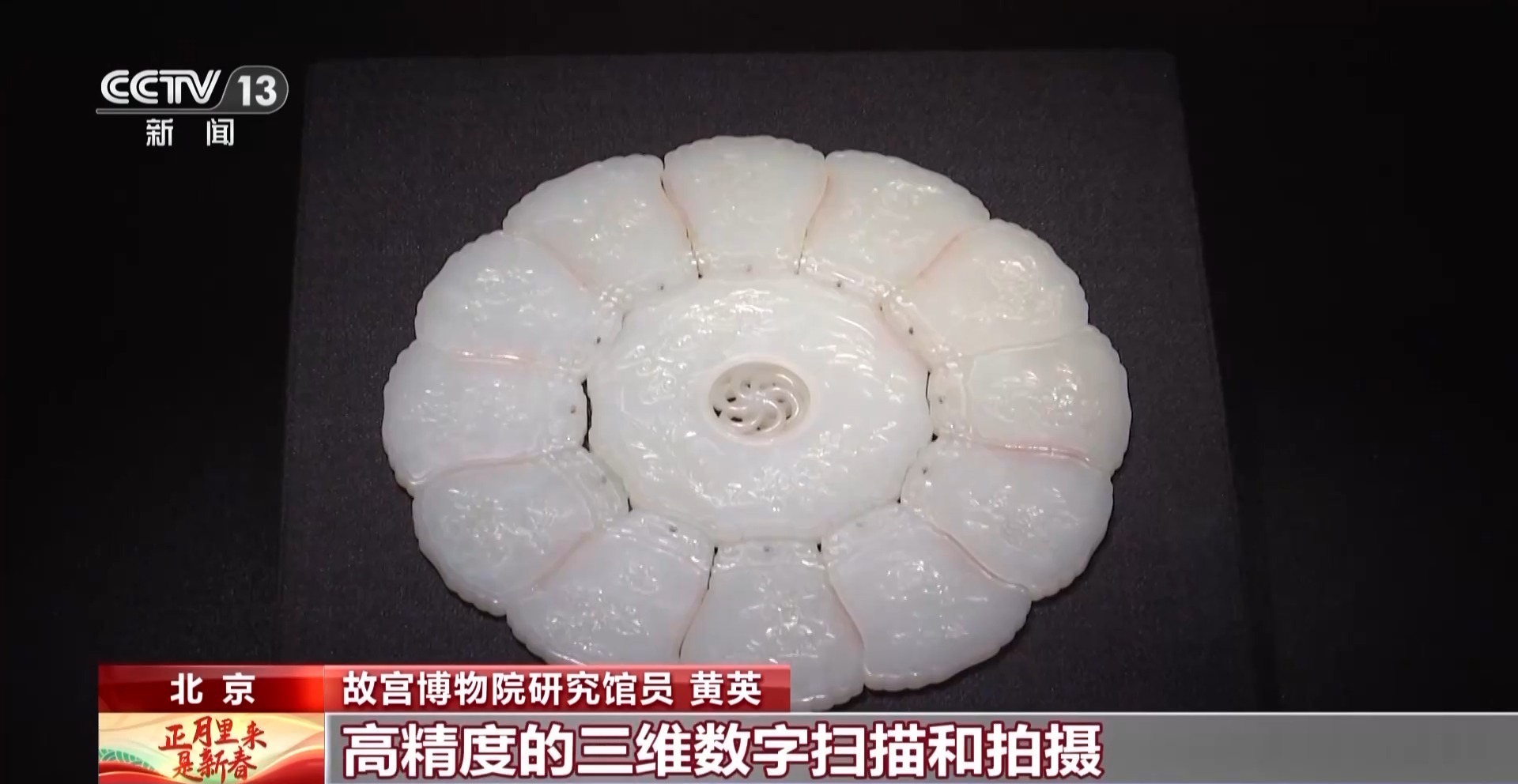 故宫博物院研究馆员 黄英:节目以故宫博物院院藏的“白玉月令组佩 ”为创作灵感,以月令、物候、花卉为核心的文化要素,故宫博物院在充分保证文物安全的前提下,对这组玉佩进行了高精度的三维数字扫描和拍摄,既保存了文物数据模型,实现了文物三维数字化,又以安全有效的数字技术手段提高文物活化利用的水平。
