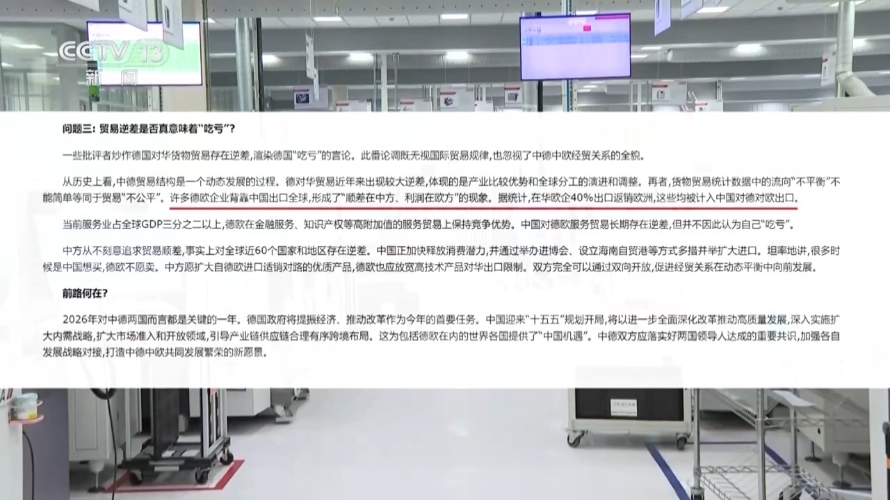 同济大学德国研究中心主任 郑春荣:默茨总理本人也表示,他希望中国这些企业能够更多到德国去投资。以前中德之间,应该是德国向中国输出技术,但是现在可能在有些领域情况已经发生了一些变化。在中国技术领先的这些领域,德国方面也欢迎中国的高科技企业去出海,去输出我们的技术。