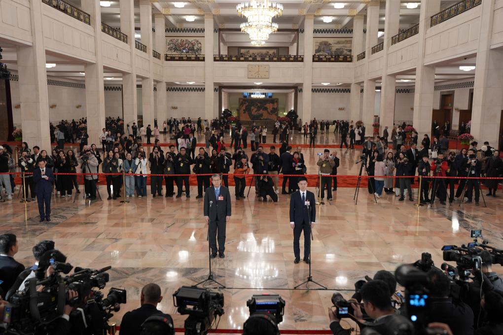 3月5日,第十四届全国人民代表大会第四次会议首场“代表通道”集中采访活动在北京人民大会堂举行。 新华社记者 王曦 摄