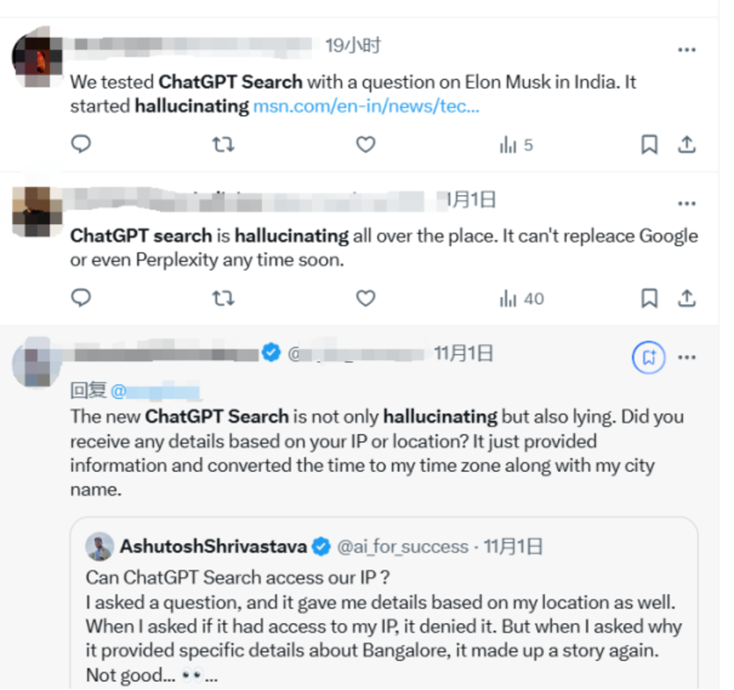 新意不够之外,不少用户在体验了ChatGPT搜索后还指出了问题。